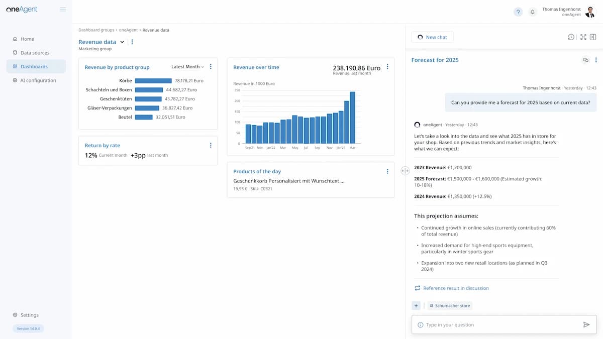 Try oneAgent for free or let our team show you how to analyze your shop and company data in minutes using natural language.
